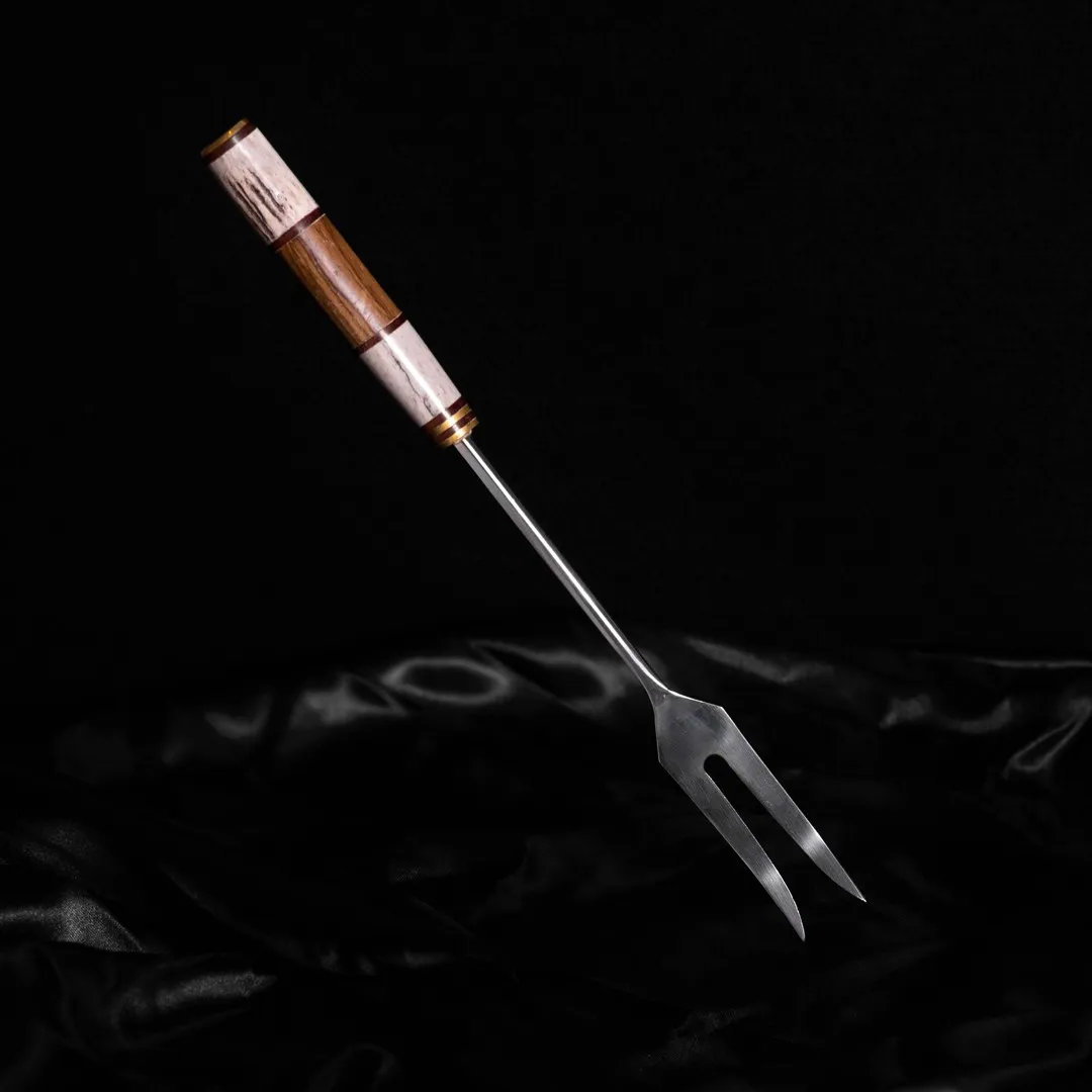 Set de asado premium pensado para quienes buscan precisión, elegancia y durabilidad. Combina acero inoxidable de alta calidad con una empuñadura clásica en materiales nobles y funda de cuero artesanal.